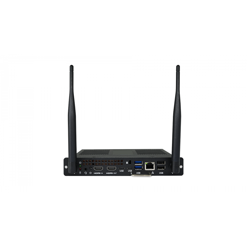 Cztery porty USB-A, w tym dwa w standardzie 3.2, zapewnią bezproblemowe podłączenie dowolnych akcesoriów. Dodatkowo WB5E820U wspiera WIFI 6, oraz został wyposażony w dysk SSD o pojemności 256 GB. Wśród portów znajdziemy również port USB-C (Thunderbolt 4.0) Wszystko to sprawia że monitor interaktywny wyposażony w tę jednostkę przekształca się w rozwiązanie typu All-In-One.